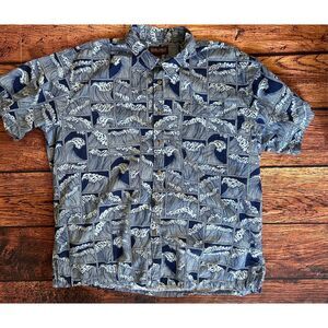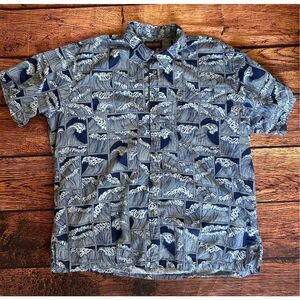 Vintage Blue & White Wave Pattern Hawaiian Shirt, Size Medium, Island Style Shir