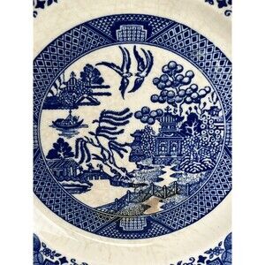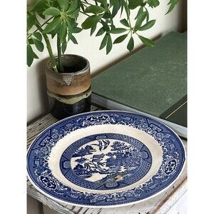Vintage Blue & White Willow Ware Aged Plate / Decor
