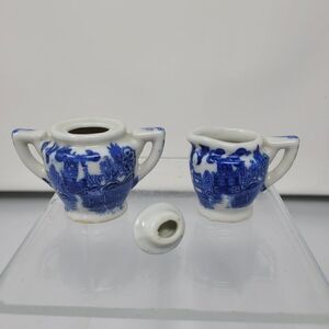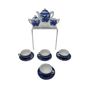 Vintage Blue Willow Porcelain Childrens Doll Tea Party Set Japan Playset Gift