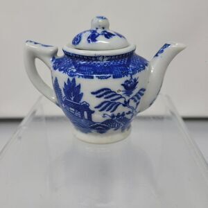 This Vintage Blue Willow Porcelain Dish Set is a delightful playset for children or dolls. Made in Japan, this collectible mini toy tea party set is a charming vintage gift.