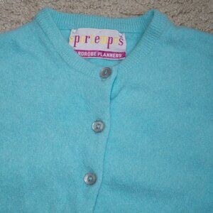 Chic Vintage cardigan in a soft blue hue. Features button-up front. Perfect for layering.