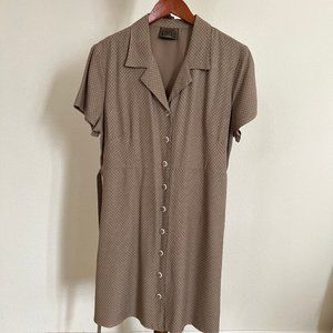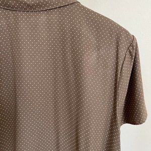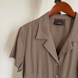 Add vintage charm to your wardrobe with this Vintage Blue Women's Size L Midi Dress in a soft dusty rose hue with playful polka dots. Designed with a classic notched collar and short sleeves, this dress features a front button closure and a removable waist tie to flatter your silhouette. Crafted from a lightweight acetate-rayon blend, it offers effortless style and comfort. Unlined for a breezy feel, it's perfect for warm-weather outings or retro-inspired looks.