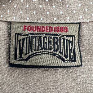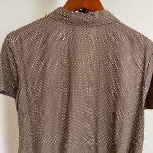 Vintage Blue Women's Size L Dusty Rose Polka Dot Collared Tie Waist Midi Dress
