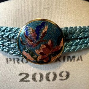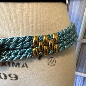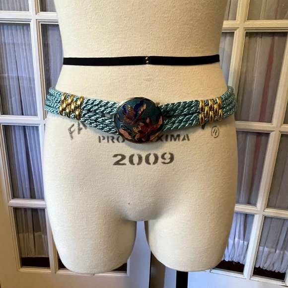 Vintage Blue Woven Rope Belt with Butterfly and Flower Buckle and Metal Studs L