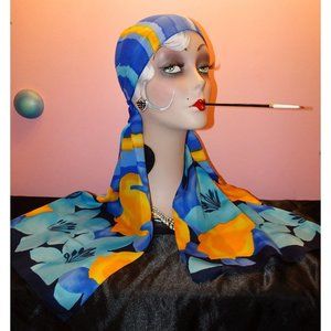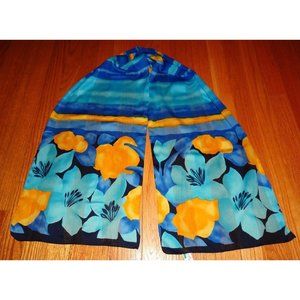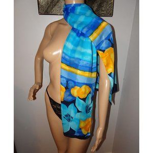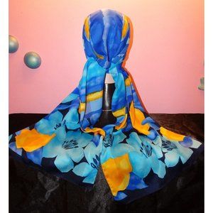 Vintage Blue & Yellow Long Floral Scarf made in Italy boho head wrap neck scarve