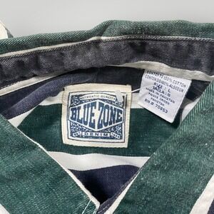 Vintage Blue Zone Denim Striped Shirt Mens L Button Up Long Sleeve Pocket Casual