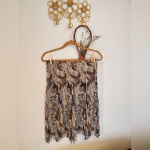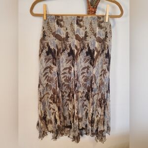 Vintage Blue and Brown Floral 100% Silk Skirt