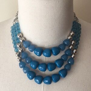 Vintage Blue and Silver Bead Statement Necklace in Silvertone Metal (19in)