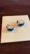 Vintage Blue and Silver Enamel Hoop Stripe Clip Earrings