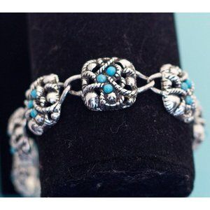 An intricate vintage blue and silver tone Art Nouveau 7 3/4 Inch Bracelet by Avon.