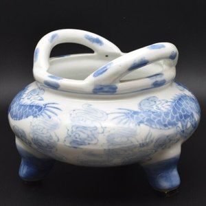 Vintage Blue and White 2 Dragons Porcelain Tripod Bowl