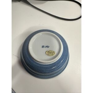 This vintage nesting bowl set features a blue and white floral design, crafted from porcelain and manufactured in Japan by Andrea By Sadek. The intricate floral pattern showcases traditional Chinese cultural influences, adding a touch of elegance to any collection or table setting. The largest bowl in the set measures 7.5 inches in diameter, making it a versatile piece for serving or display purposes.never been used
