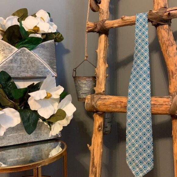 Vintage Blue and White Briar Silk Neck Tie