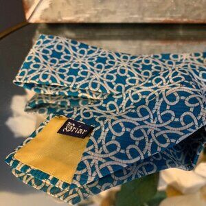 Briar Vintage Neck Tie - blue and white with a yellow lining. Beautiful unique geometric pattern. Sort of looks like knots or flowers - depends on how you look at it. Excellent condition.