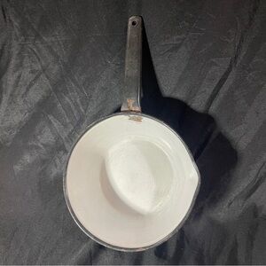 This charming spouted cookware pot features a delightful blue and white swirl adding a touch of vintage elegance to your kitchen. Crafted from durable enamel