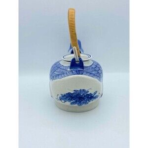 Vintage Blue and White Handpainted Chinese Duck Teapot with Wrapped Handle