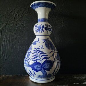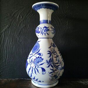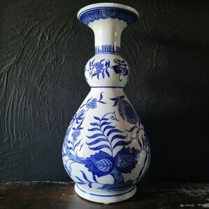 Vintage Blue and White Porcelain Chinoiserie Vase, Grandmillennial Decor
