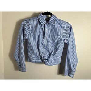 Vintage Blue and White Striped Button Up Cropped Shirt Size Small