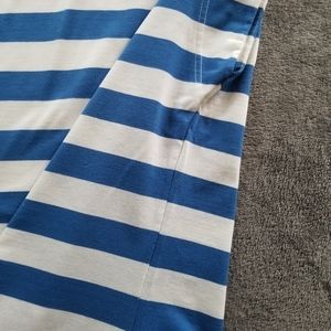 Classic striped top. Features bold blue and white pattern. Short sleeves. Perfect for casual wear.