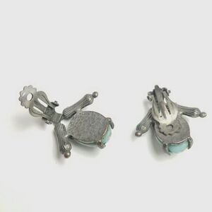 Vintage Blue Cabochon and Silver Tone Clip On Earrings, Retro Design, Estate