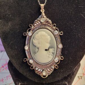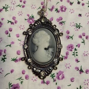 Vintage Blue/Grey Cameo Crystal Pendant Necklace