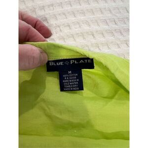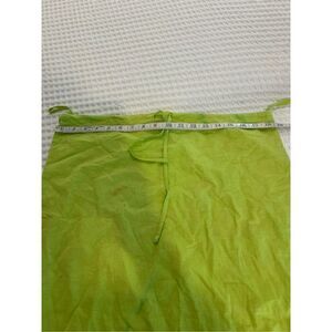 Great conditon. Some minor discoloration and a couple spots, shown in photos. Really nice skirt, tie cinch waist, side slits and embroidery lace at the bottom. Size Medium. Approx measurements across waist 18.5” length 28”