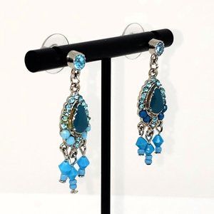 Vintage Blue/Teal Dangle Drop Chandelier Earrings
