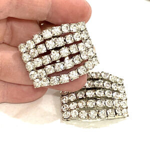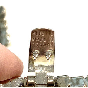 Vintage Bluette Shoe Clips clear white rhinestones on silvertone metal settings signed Made in France. Fantastic sparkle and shine on this pair - just stunning! Gently worn - no damage or flaws.