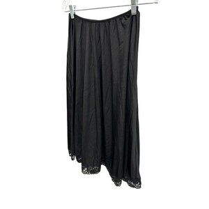 Vintage Blush Black Half Slip Elastic Waist Lace Hem SZ Small