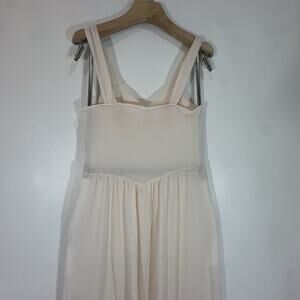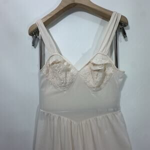 Vintage Cream Nylon Slip Dress Lace Bodice Maxi Nightgown Romantic Cottagecore 46" long