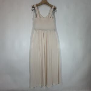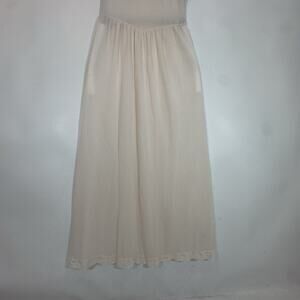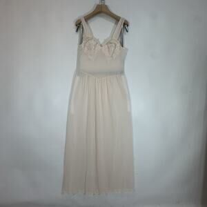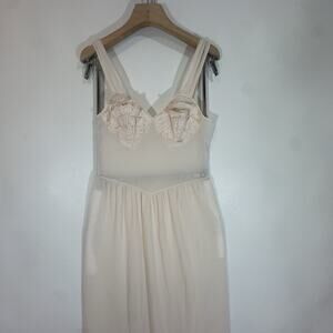 Vintage Cream Nylon Slip Dress Lace Bodice Maxi Nightgown Romantic Cottagecore 46" long