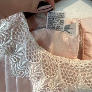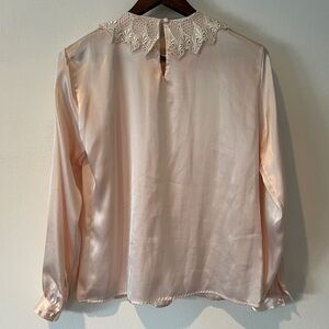 Vintage Blush Pink Lace Collar Keyhole Back Long Sleeve Blouse Coquette Feminine
