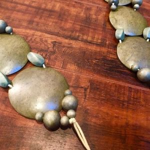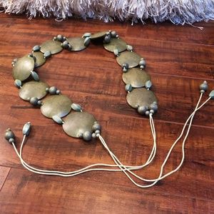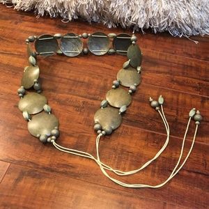 Vintage BoHo Hippie Festival CHIC Green Wooden Beaded Disc Sache Tie Belt SM