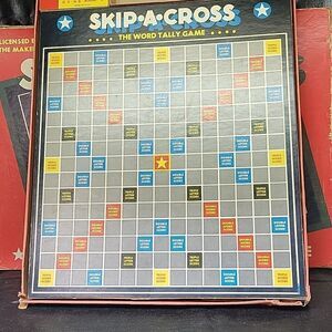 Vintage Board Game Skip A Cross A Word Tally Game by Cadaco Ellis 1953 Complete. The box has wear as shown in the pictures.