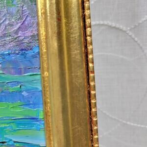 Vibrant original oil painting, an atmospheric depiction showcasing a boat with a fisherman, alongside a figure wading in the water. This framed artwork features a colorful palette with thick, textured brushstrokes characteristic of the Impressionist style.