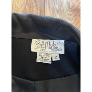 Vintage Bob Mackie long blazer flown with embellishments. Size 10. Satin collar with sleeves, padded shoulders, zipper and fold over front closure. Has front slip that measures 24” from end seam. Sleeves measure 24” from shoulder. Chest measures 18.5 across. Length is 60” from shoulder. Some damage to beads shown in pics, inside of collar has wear, seen in pics.