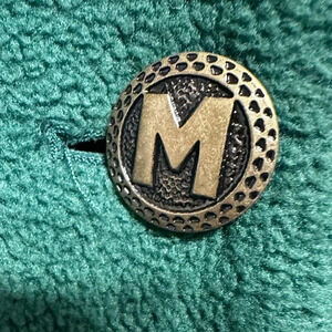 Vintage, fleece coat by Bob Mackey. Rag missing but I think it’s an XL. It’s also an oversized fit (PLEASE see measurements to assure fit). The pictures don’t pick up the color well, but it’s emerald green with gold, embroidery. Green fleece, with attached, embroidered scarf. Button up, front closure