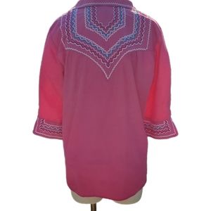 Hot pink 90s embroidered blouse. Dagger collar and ¾ sleeves. Very good condition.