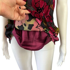 Vintage Bob Mackie Silk Blend Velour Floral Cowl Neck Top