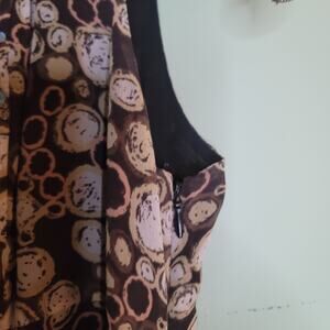 Vintage Bob Mackie Silk Dress Size 12 Brown Sleeveless Sequins Geo Art Print Bow