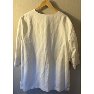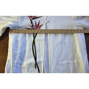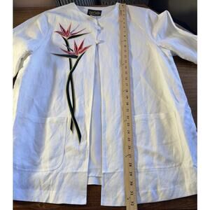 Vintage Bob Mackie Size XL 3/4 Linen Blend White Bird of Paradise Tunic Pockets