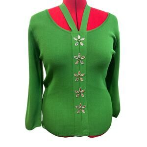 Vintage Bob Mackie Studio Medium Embellished Green Knit Top