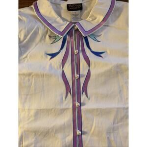 Vintage Bob Mackie Wearable Art 3/4 Sleeve White Ribbon Collared Jacket Size XL