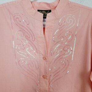 Vintage Bob Mackie Wearable Art Peach Button Up Blouse Sequins Sz Med NEW W/TAGS