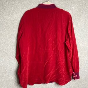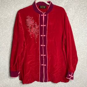 Vintage Bob Mackie Wearable Art Red Silk Floral Embroidered Mandarin Collar Top