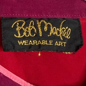 Keywords: Bob Mackie, Wearable Art, Vintage top, Red top, Floral embroidery, Mandarin collar, Frog closures, Bohemian style, Statement top, Art to Wear, Silk top, Designer top, Unique clothing