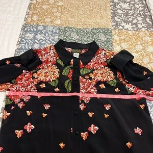 Bob Mackie Wearable Art Silk Long Sleeve Button Up Blouse
