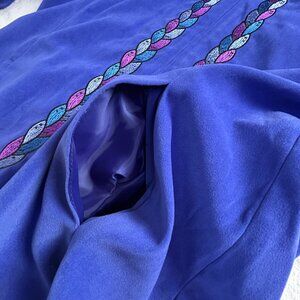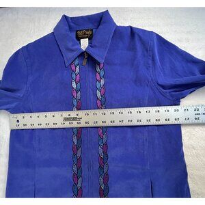 Vintage Bob Mackie Wearable Art Womens Small Blue Embroidered Braids Zip Jacket