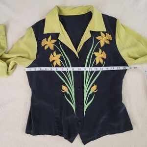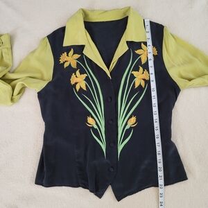 Vintage Bob Makie Silk Blouse Women's Size Small Black Yellow Floral