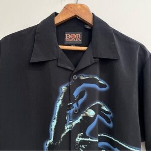 Vintage Bob Marley Dragonfly Hard Rock Cafe Myrtle Beach Button Up Shirt Black Blue Mens L